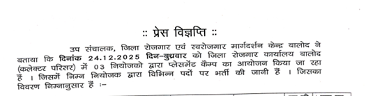Balod Placement Camp 2025: कौन-कौन सी कंपनियां शामिल हैं?