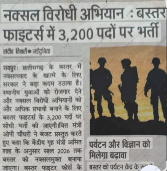 CG Bastar Fighter Bharti 2026: यदि आप छत्तीसगढ़ राज्य के स्थानीय युवा हैं और देश सेवा के साथ स्थायी सरकारी नौकरी पाना चाहते हैं, तो CG Bastar Fighter Bharti 2026 आपके लिए एक सुनहरा अवसर है।छत्तीसगढ़ सरकार द्वारा बस्तर क्षेत्र में नक्सलवाद के खात्मे और स्थानीय युवाओं को रोजगार देने के उद्देश्य से 3200 बस्तर फाइटर पदों पर सीधी भर्ती की घोषणा की गई है। यह भर्ती 2026 तक नक्सलवाद समाप्त करने की रणनीति का एक महत्वपूर्ण हिस्सा है, जिसमें बस्तर संभाग के सातों जिलों के युवाओं को प्राथमिकता दी जाएगी।